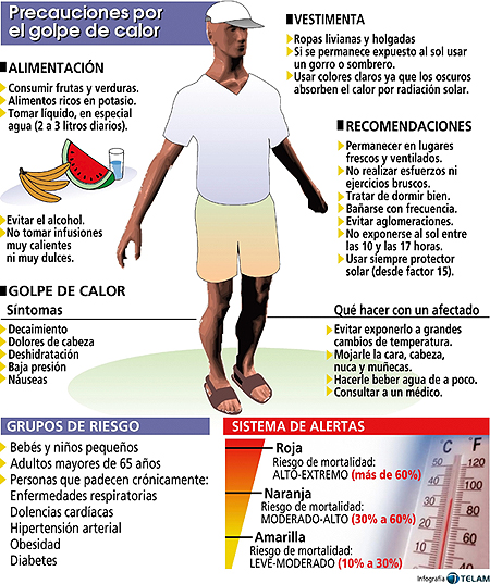 • No realizar ejercicios físicos en ambientes calurosos. Tomar líquido antes de comenzar cualquier actividad al aire libre.